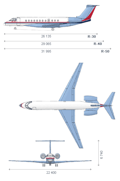 Самолеты семейства Як-48 рассчитаны на перевозку 30 - 50 пассажиров при дальности полета от 4 700 до 2 500 км соответственно.